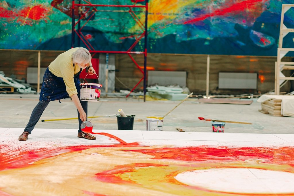Живописне полотно площею 2000 квадратних метрів (висота – 10 м, а ширина – 200 м) на космогонічну тематику – це частина українського артпроєкту, ідея якого належить фундатору Музею сучасного українського мистецтва Корсаків, куратору проєкту Віктору Корсаку. Цей проєкт пропонує унікальне українське бачення історії створення та розвитку планети, а також прогнозування майбутнього людства. «Космогонія» породжує діалог, ставить актуальні питання та є найбільшим мистецьким проєктом України у часи державності.Автор «Космогонії» – видатний український митець Петро Антип, який почав працювати над картиною з листопада 2022 року. Це мистецьке дійство триватиме понад 3000 годин – 18 місяців поспіль – і стане найбільшим у світі перформансом.Читати ще: «Смислів не бракує. Потрібні символи»: у Луцьку художник з Горлівки створює найбільшу в світі картину