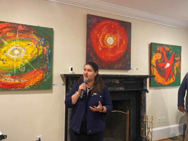 З 14 до 22 липня в Українському домі у Вашингтоні триває виставка «Космогонія: українська Візія», де громадськості представлено репліки фрагментів найбільшої картини у світі. Відкриття виставки відвідала Посол України в США Оксана Маркарова, яка звернулася до відвідувачів з вітальним словом.
