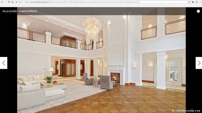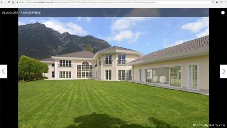 Сказати, що Villa Glory - розкішний маєток, було би надто скромно. Glory у перекладі з англійської - це "слава" і "велич". Фотографії внутрішнього оздоблення маєтку свідчать, які амбіції мав його господар. "Немов на розкішній яхті, тут були використані лише найбільш вишукані матеріали найвищої якості", - зазначено в оголошеннях на німецьких порталах елітної нерухомості. Ціна маєтку - майже 13 мільйонів євро. Люстри у стилі рококо вінчають собою залиті світлом зали, мармурова підлога випромінює атмосферу палацу італійської знаті. Над інтер'єром працював один з найвідоміших дизайнерів Мюнхена, зазначено в оголошенні про продаж. Хоча у палаці, крім підземного гаража, лише два поверхи, господар не пошкодував коштів на просторий ліфт, оздоблений елітними породами дерева. За претензійністю власник цієї вілли явно перевершив навіть найбагатшого зі своїх сусідів у Гарміш-Партенкірхені - російського мільярдера Романа Абрамовича, якому належить історична вілла Leitenschlössl.