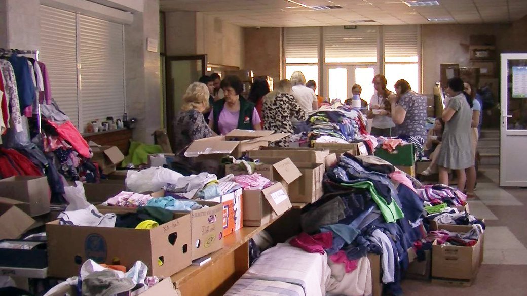 Щодня в гуманітарний пункт приходять орієнтовно півтори сотні родин, аби отримати необхідні речі. У волонтерському центрі діти допомагають дорослим сортувати одяг, бавляться з дітьми-переселенцями, поки їхні батьки зайняті справами.