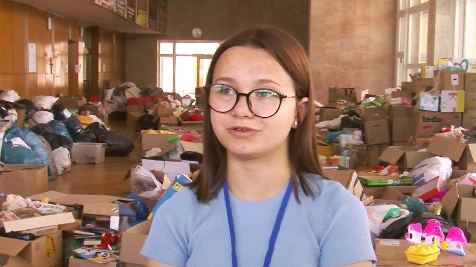 Волонтерити до пункту допомоги приходить і 14-річна Ліза Літвицька. «Ти бачиш цих людей, які приїжджають з інших куточків, де майже неможливо жити, й хочеться так само жити та радіти. Надихає те, що не здаються люди», – каже школярка.Шестирічна Мілана – найменша дівчинка-волонтерка у центрі. Сюди постійно проситься разом з мамою Наталією. Завдання Мілани – гратися із дітками вимушених переселенців.«Встає зранку, очі відкриває і каже: «Мама, ти мене сьогодні візьмеш на волонтерство? Мама, візьми мене, я тебе прошу!» Тобто ми ідемо сюди та отримуємо задоволення від того, що людям приносимо корить», – розповідає мама Мілани Наталія Панасюк.