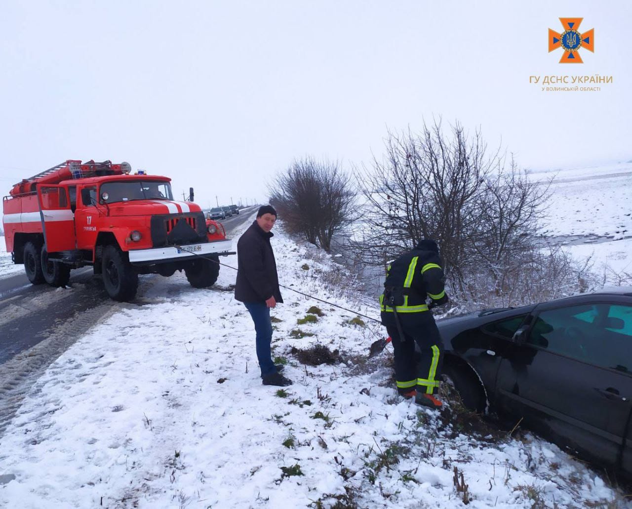 На Волині рятувальники відбуксирували легковий автомобіль в якому перебував чоловік з чотирма дітьми.