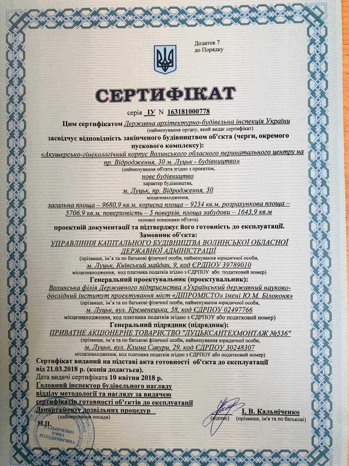 Заклад розрахований на 3 тисячі пологів в рік, 200 відвідувань поліклінічного відділення в зміну. В стаціонарі знаходяться відділення екстрагенітальної патології, патології вагітності, анестезіології та інтенсивної терапії новонароджених. А ще 11 сучасних індивідуальних пологових залів з двома акушерськими операційними. Облаштовані і післяпологове та надсучасне гінекологічне відділення.«Це надія цього закладу, бо саме там відбуватиметься лікування важких форм безпліддя з сучасними репродуктивними технологіями. Також є сучасні операційні зали», – зазначила Ірина Горавська.