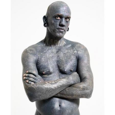 2. Найбільше в світі татуювань на тілі зробив собі циркач Лакі Дайамонд Річ із Австралії. Його тіло розмальовували впродовж тисячі годин близько сотні тату-художників. Фото: Barcroft Media