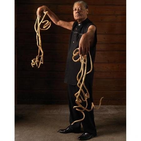 7. Мелвін Буте зі США має щонайдовші нігті на руках. Загалом їх довжина сягає 9,85 метра. Фото: Barcroft Media