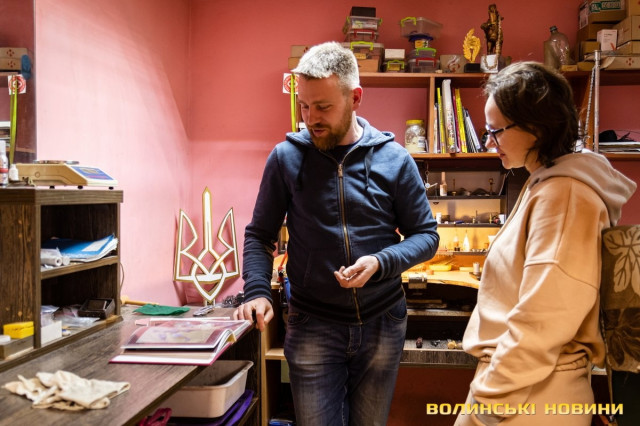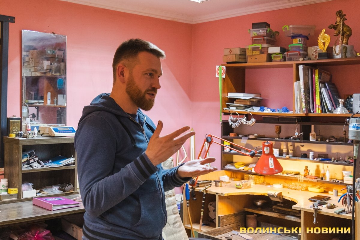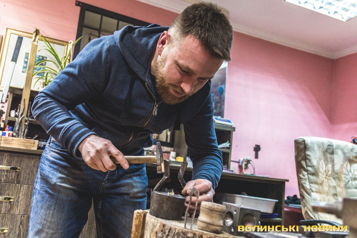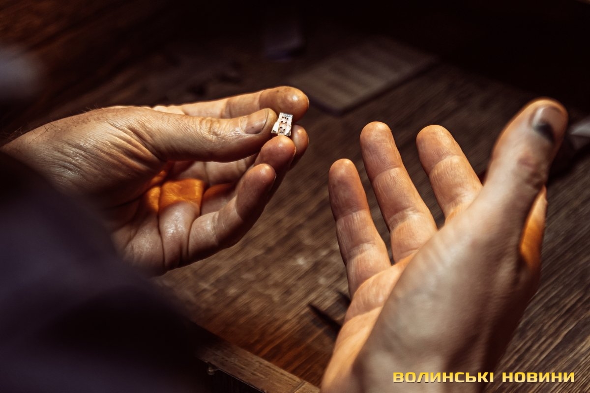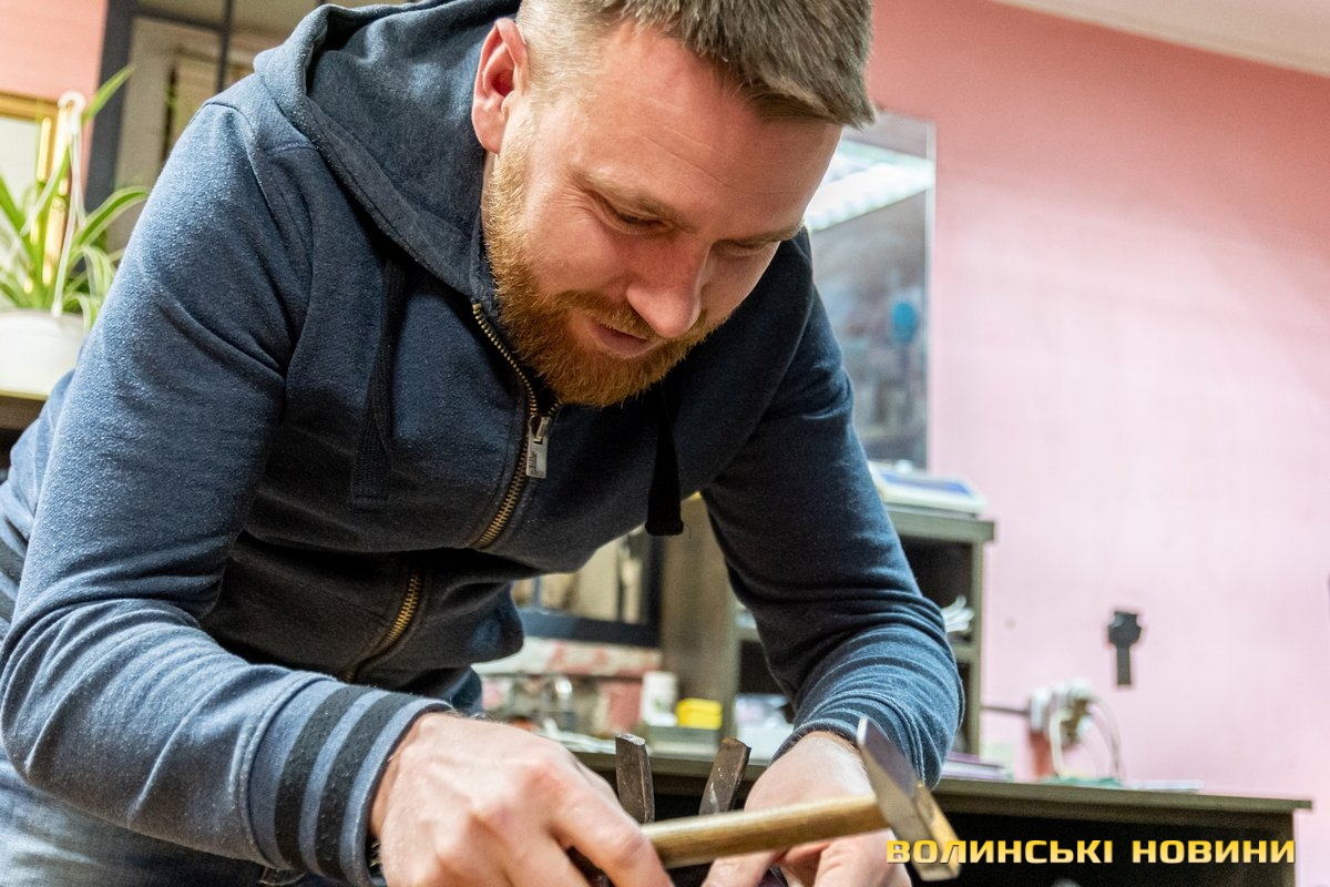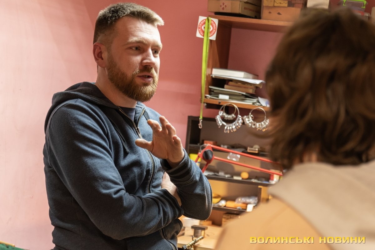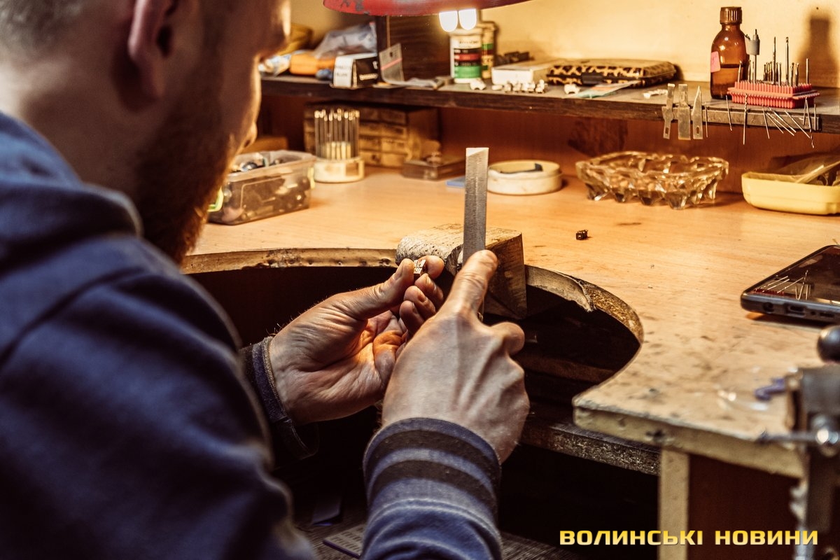 нерухомість, будівництво і запросив мене, щоб я відновив цей бізнес. Там була все ручна робота – без лиття. Ми робили персні, сережки з дорогоцінних металів, з діамантами, я дітей його навчав. Але почався карантин і вже не стало таких продажів, тож повернувся до Луцька. Що цікаво, у Польщі я стикнувся з тим, що старі майстри тримають усі свої секрети при собі й не розповідають їх чужим, якщо ти не з його родини», – пригадує лучанин.Загалом він розповідає: для ювеліра немає різниці, з яким металом працювати. Чи то мідь, чи то латунь, чи то срібло-золото.