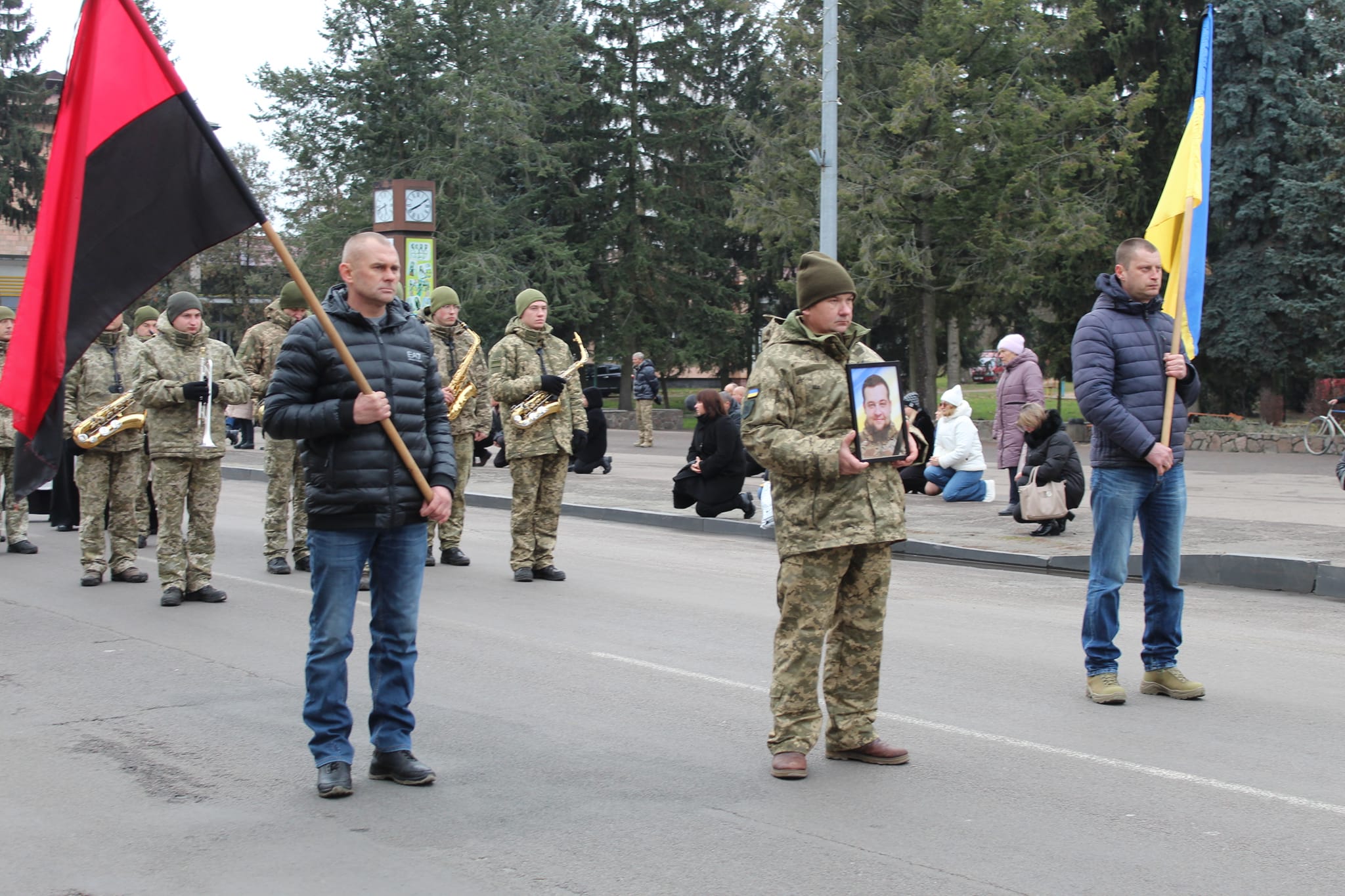 Від рідного дому траурний кортеж вирушив у центр міста, де біля пам’ятного знака Борцям за волю та незалежність України відбулася громадська панахида.