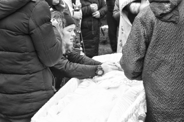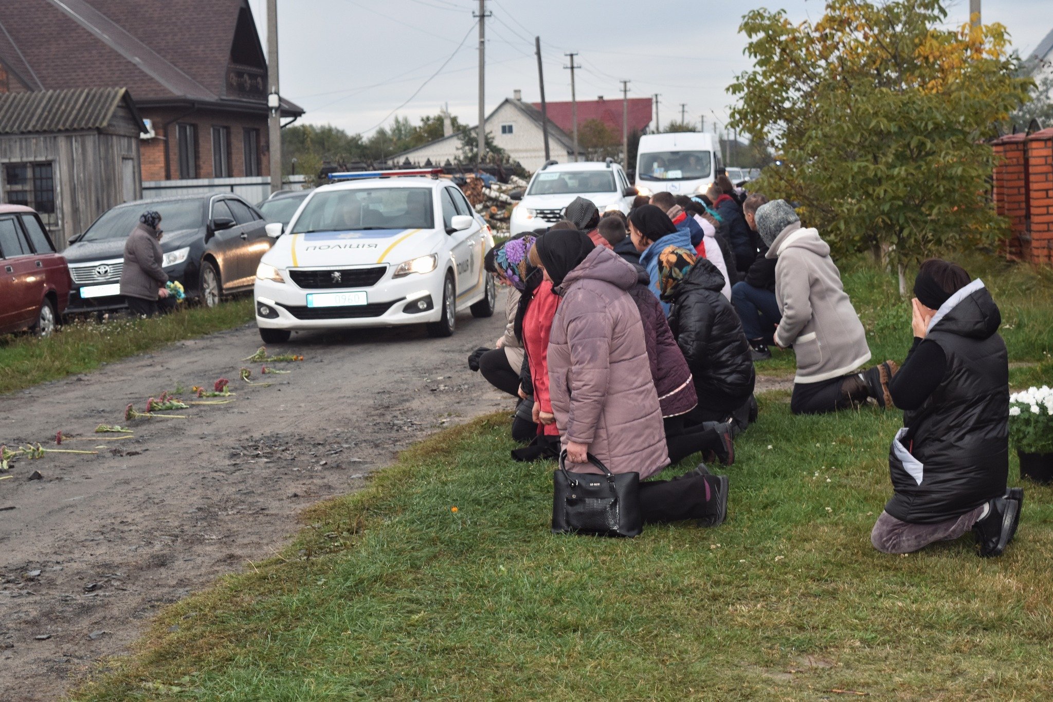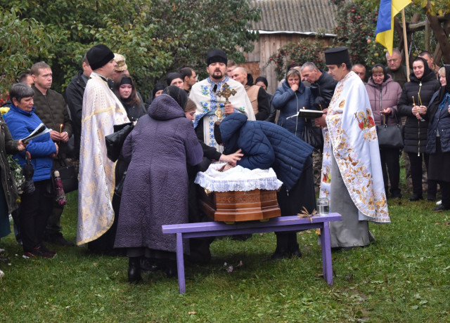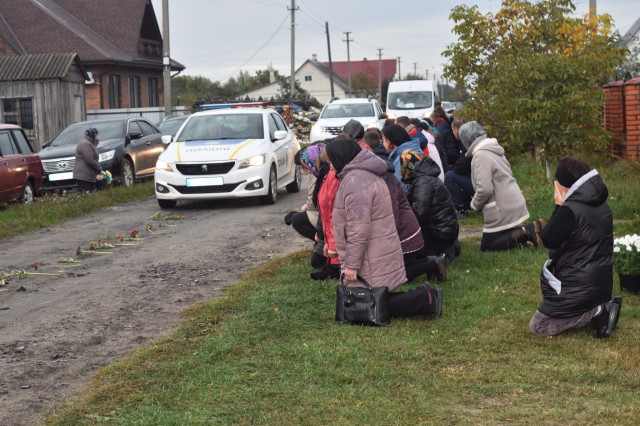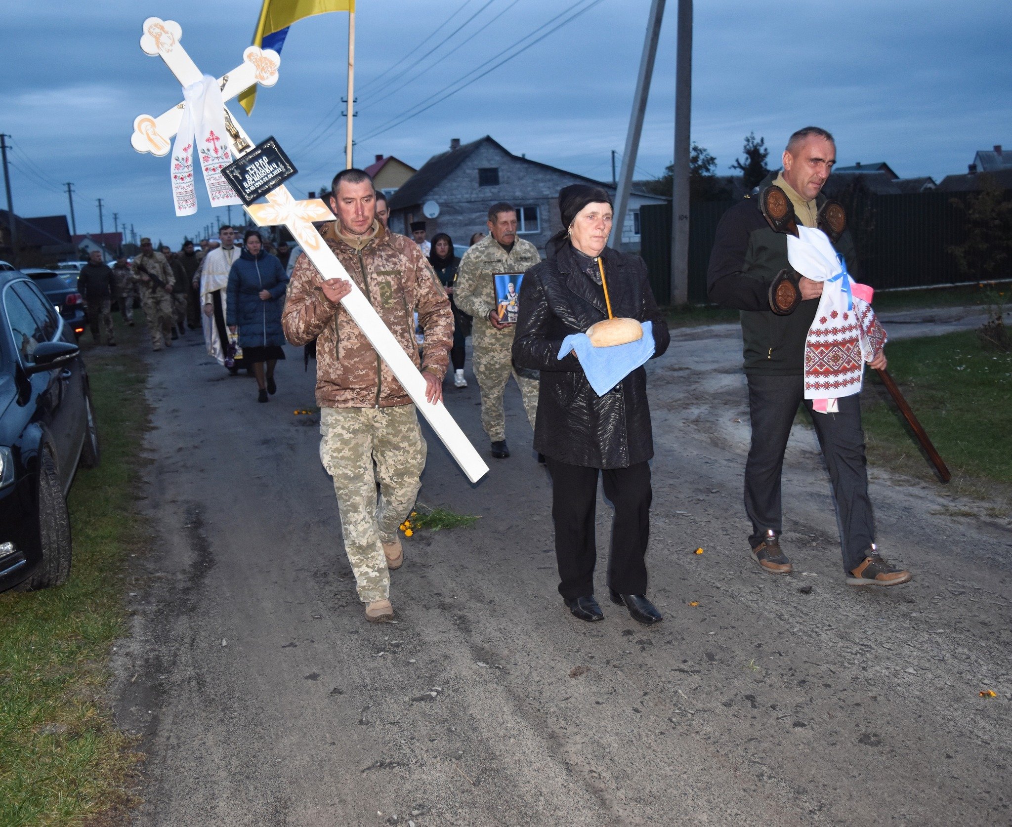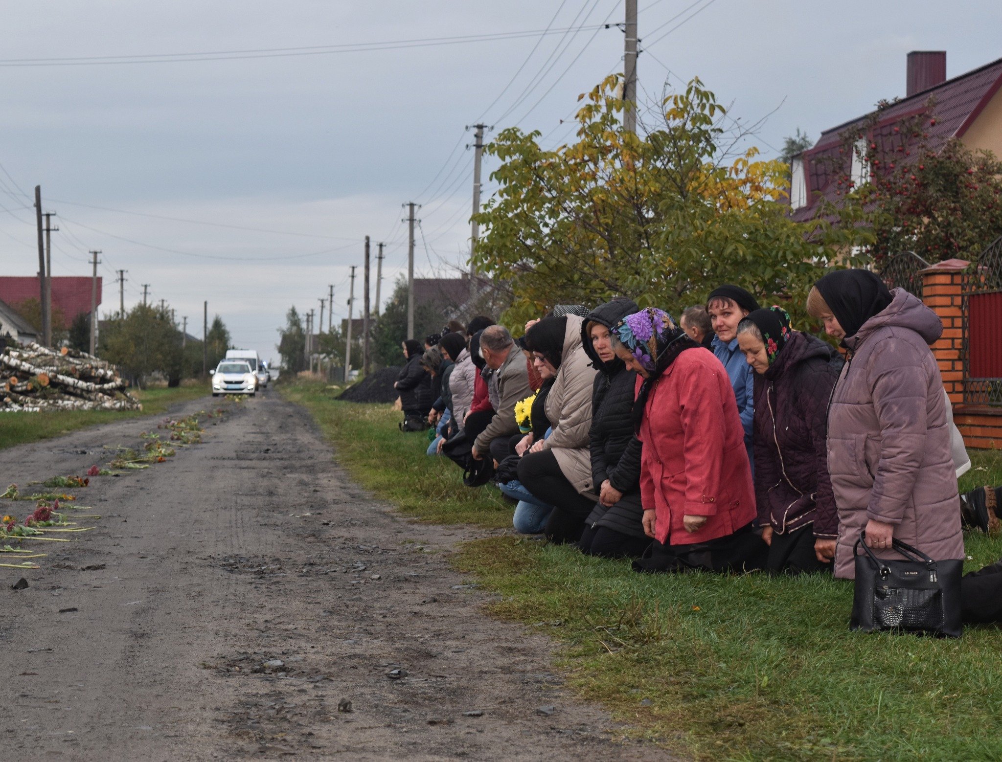 У рідному селищі люди навколішки зустрічали Героя. Тіло захисника востаннє занесли до рідного двору, де звершили чин відспівування.