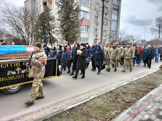 Траурний кортеж люди зустрічали навколішки. І знову серце кожного, хто стояв біля пам’ятного знака Борцям за волю та незалежність України, розривала невимовним болем щемлива «Плине кача» та думка «Скільки ще?». Скільки ще ми маємо віддати молодих життів, аби перемогти ворога? Аби Україна знову зажила мирним життям?!