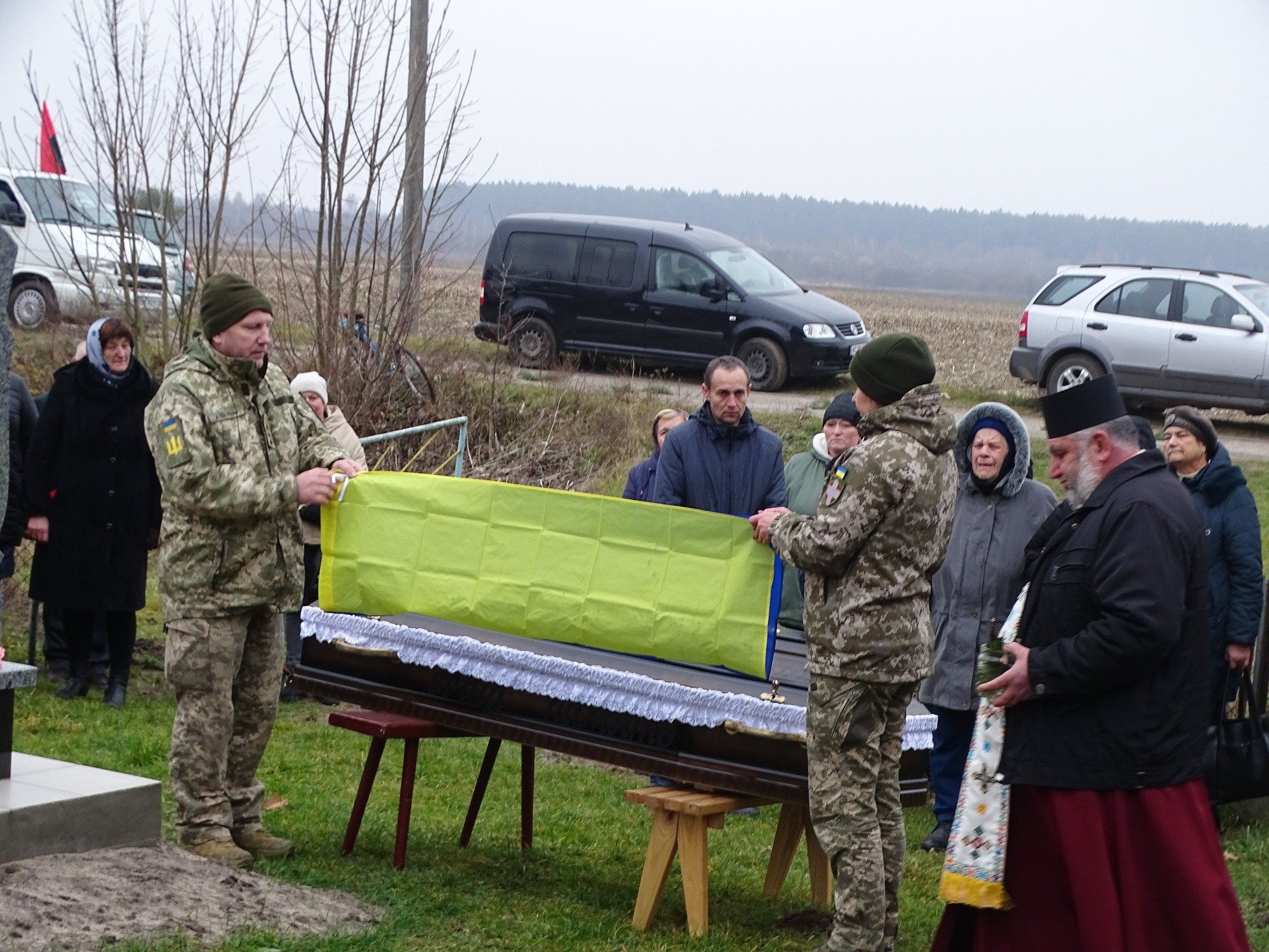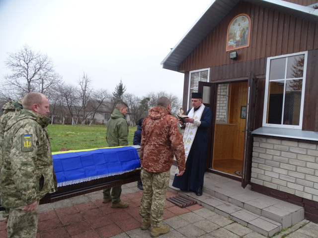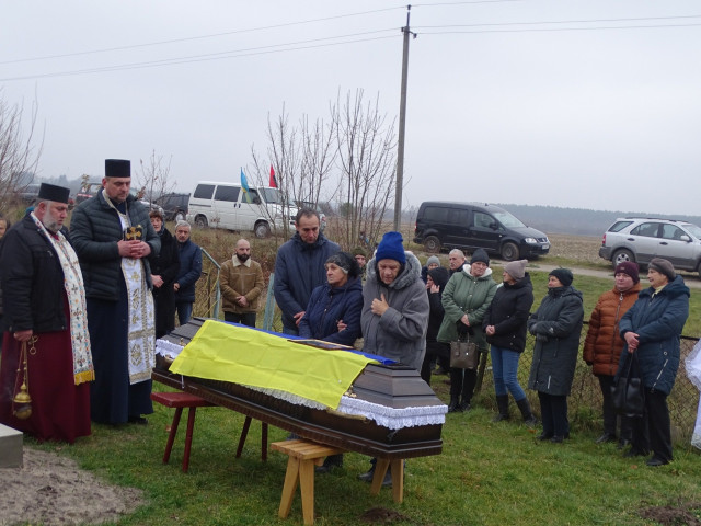 За душу померлого воїна Дениса піднеслася спільна молитва. З військовими почестями захисника України похоронили на місцевому кладовищі поруч із могилою мами та дідуся.