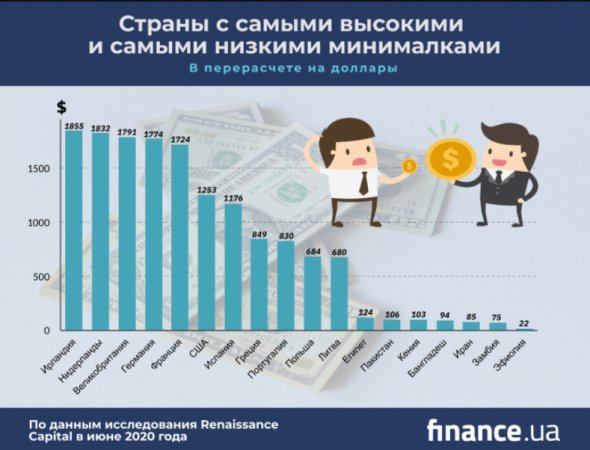 У світі найвищу мінімальну зарплату отримують жителі Ірландії - $1855. Це понад 52 тис. грн.