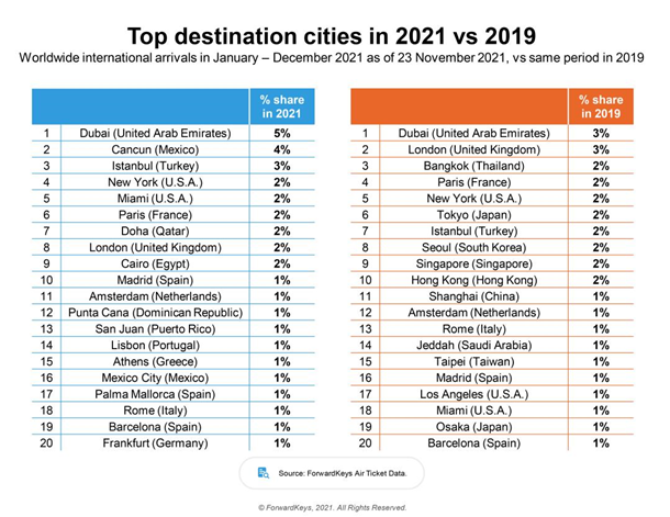 Рейтинг уже другий рік поспіль очолив Дубай. На другому місці опинився Канкун, на третьому – Стамбул.