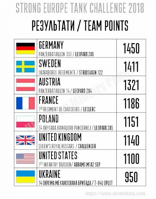У розвідці набрали 42 бали з 45 і на фініші мали перше місце. За медичну допомогу і відновлення пошкодженої техніки були на третьому місці: правильно сказали координати, зробили дев’ять рівнів доповіді за стандартами НАТО, викликали вертоліт. Якби ми набрали свої бали за стрільбу, як у минулому році з Т-64, то в трійку переможців точно увійшли б. У минулому році ми в обороні набили більше, ніж теперішній переможець. З іншого боку, на Т-64 ми б втратили 50 балів на водінні. Одна з вимог вправи – це їхати на повній швидкості заднім ходом. Т-84 заднім ходом може їхати 35 км/год, а Т-64 – до 4 км/год. У водінні зараз ми зайняли четверте місце, але з першим різниця була незначна – 20 секунд. «Челленджери» та «Леклерки» – це швидкі танки, але чомусь відстали від нас. У радіаційному та хімічному зараженні у нас був другий результат.