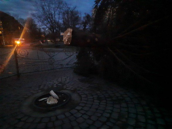 «Сильні пориви вітру сьогодні вночі зламали стовбур ялинки по вул. Пушкіна. Але до різдвяних свят все відновимо!» – написав Найда.