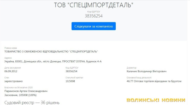 Директором ТОВ «Технології Бізнеса» є донеччанин Артем Олександрович Парамонов. Він же очолює донецьке ТОВ «Спецімпортдеталь». А до 2017 року він був керівником ТОВ «Данко», яке з приходом на Волинь директором «Служби місцевих автомобільних доріг у Волинській області» Ігоря Свиридова постійно виграє тендери на ремонт та будівництво доріг області. Для цього навіть тендери пишуться так, аби тільки певна фірма могла перемогти.Про те, що Артем Парамонов досі пов’язаний з діяльністю ТОВ «Данко» свідчать і судові матеріали. Так, в ухвалі Краматорського міського суду Донецької області від 24 квітня 2020 року йдеться, що правоохоронці встановили схему розтрати бюджетних коштів. Однією з ланок цієї схеми було ТОВ «Данко», іншою – ТОВ «Спецімпортдеталь».