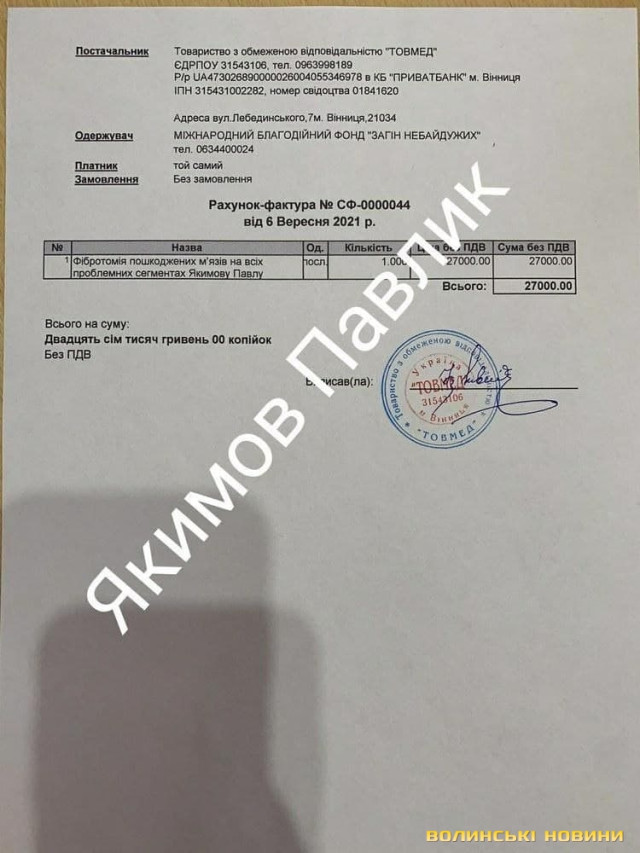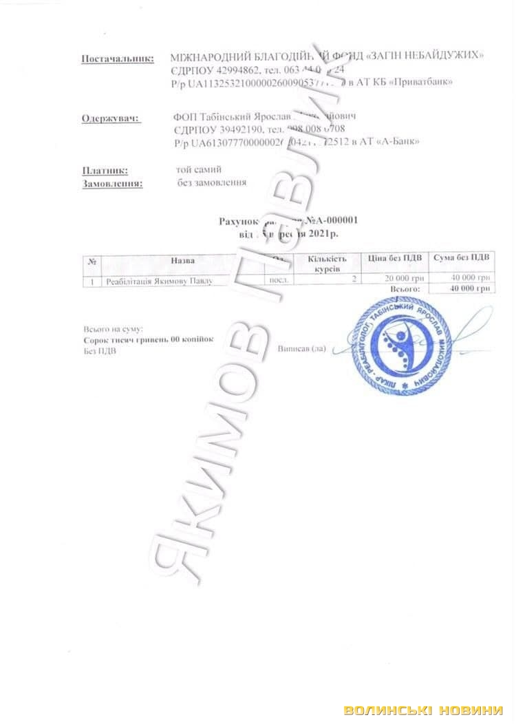 Отримувач: Якимова Оксана Володимирівна (мама).