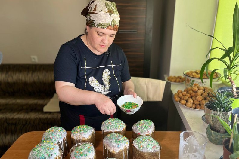 Перед Великоднем жінка готує чергову передачу для бійців. 2 травня випікала 30 пасок, які теж хоче відправити на фронт. Святкові посилки поїдуть поштою на шість напрямків, передає Суспільне.