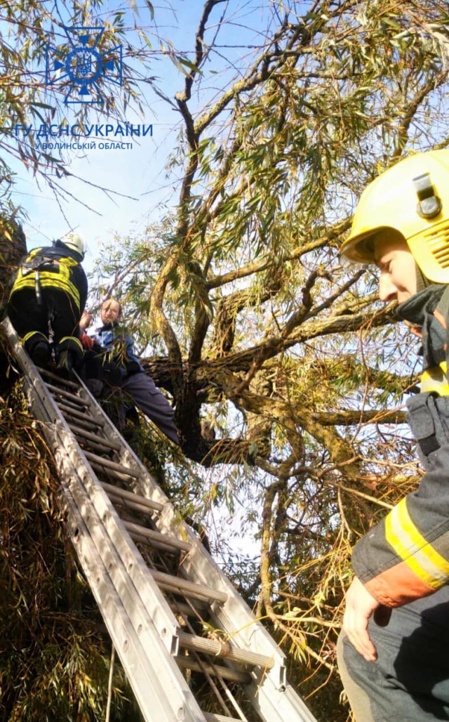Обідньої пори мешканець села Клопочин Володимирського району під час обрізання дерева травмувався гілкою, що падала, та не зміг злізти з дерева, повідомили у ДСНС Волині.