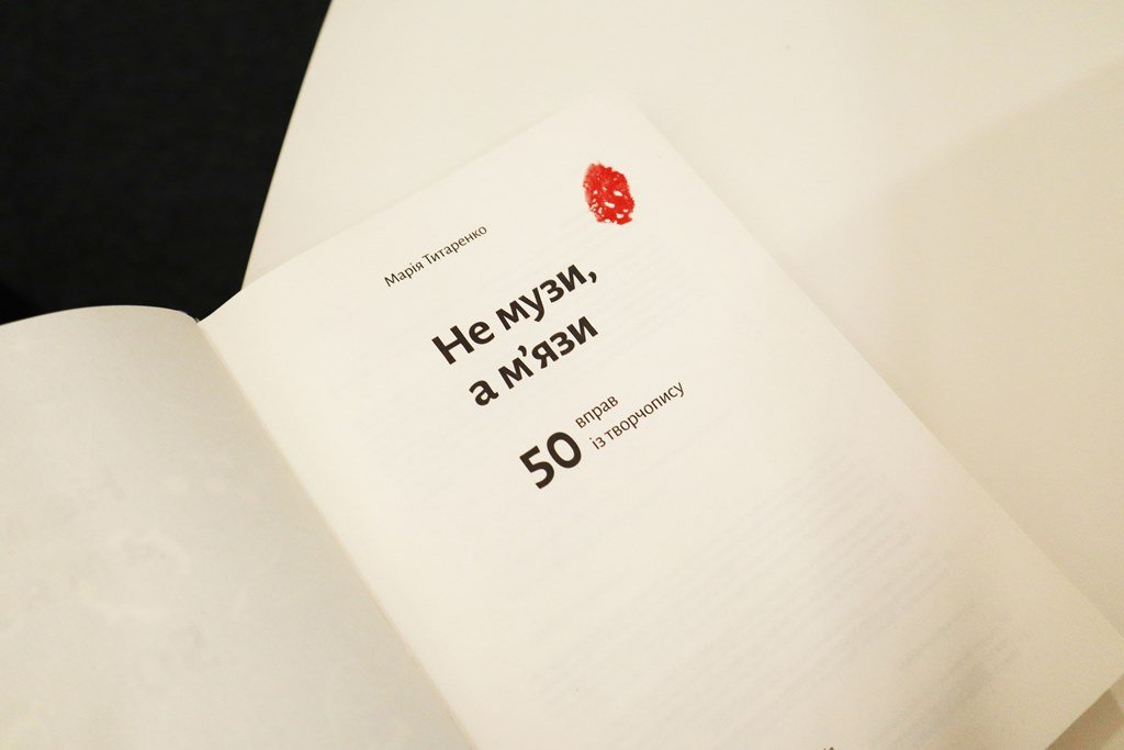 Нова книга Марії Титаренко «Не музи, а м'язи» – це результат двадцятирічної викладацької діяльності. Впродовж цього часу вона експериментувала зі студентами на різних творчописних курсах, викладала у Львівському національному університеті імені Івана Франка, а зараз навчає комунікацій в Українському католицькому університеті.«Я люблю викладати. Люблю вигадувати різні правила, працювати зі студентами, творити нову синергію, цей новий драйв. Я люблю проводити пари в дуже нестандартних умовах: на озерах, в парках, на прогулянках», – розповідає письменниця.Нестандартно Марія починає й будь-який творчий курс. Вона пояснює, що стиль написання кожної людини – як відбиток пальця, неповторний. Тож воркшоп у Луцьку не став винятком, і всі присутні мали змогу намастити палець китайським чорнилом та залишити свій індивідуальний слід на папері.«Я хочу, щоб ця метафора ID спрацювала як метафора вашого унікального творчого мистецтва. Особливо це стосується тих, хто тільки хоче писати або відновити навички зі створення текстів. Оцей відбиток пальця нехай підказує, що ваш світ має бути таким же унікальним і не повторюватися», – каже вона.Марія зауважує, що книга «Не музи, а м'язи» – не для полиці. Це книга-тренажер, яка постійно має бути під рукою. А також додає, що має алергію на слово «натхнення», і запевняє, що його можна генерувати.«Натхнення не приходить, не падає на нас із крил і рил єдинорогів. Я прихильниця того, що ми – як лампочки: коли працюємо – світимось. І в процесі світіння лампочка нагрівається. Ось для мене натхнення і є це тепло. Воно генерується в процесі світіння», – пояснює авторка.Тож книга Марії Титаренко якраз про те, що в письмі можна вправлятися, і для цього є різні практики. Авторка недарма обрала спортивну метафору для її назви. Каже, що людина може «накачати» свої писемні навички, як м’язи у спортзалі. А письмо – це зусилля, а не медитація.