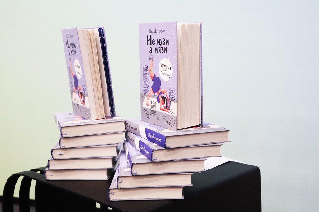 «Не музи, а м'язи. 50 вправ творчопису» – друга книга Марії Титаренко. Першою вийшла «Комунікація від нуля. Есеї для Мані».