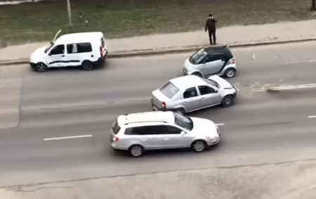 Відео з місця пригоди оприлюднив у Фейсбуці Саша Панасюк. Також він зазначив, що за останні два дні це друга ДТП на цьому місці.