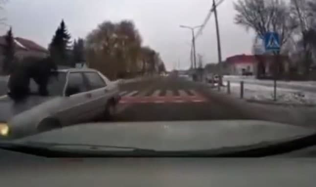 У результаті він десяток метрів провіз чоловіка на капоті авто.