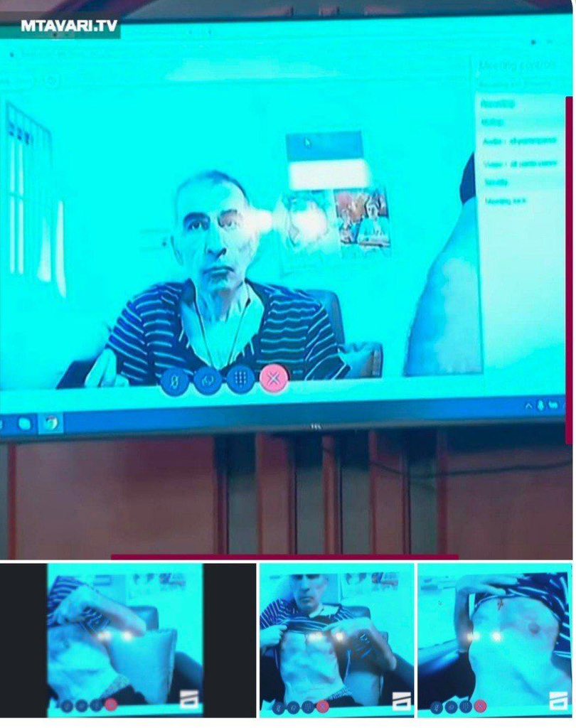 Ув’язнений колишній президент Грузії Міхеіл Саакашвілі 3 липня з`явився на засіданні Тбіліського міського суду по відеозв’язку і продемонстрував свій стан.
