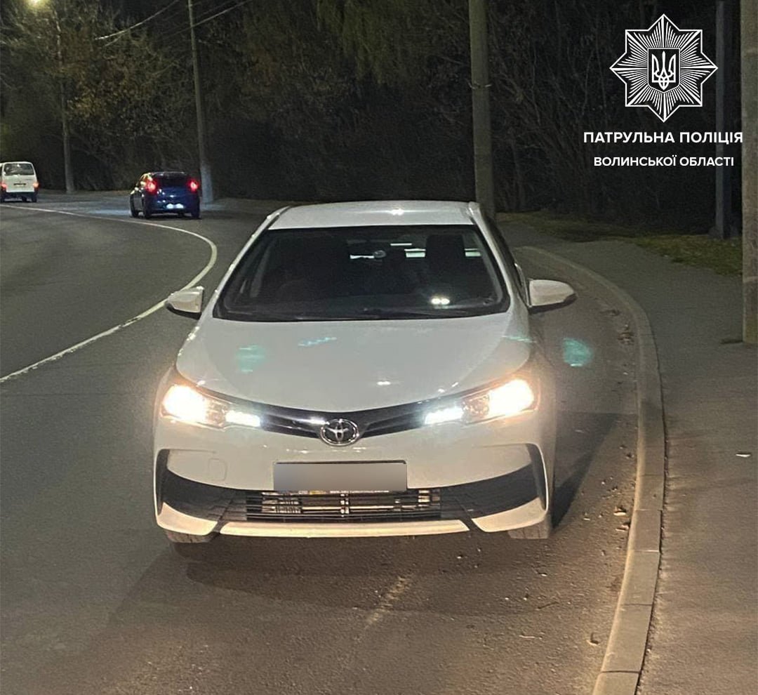 Вчора, близько 21-ї години, патрульним надійшло повідомлення від заявника, який розповів, що на вулиці Гнідавській, що у Луцьку, автомобіль Toyota Corolla виїхав на зустрічну смугу для руху. Згодом водій вийшов з авто.