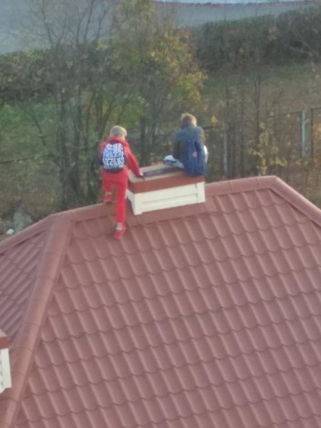 Двоє хлопчаків шкільного віку вилізли на дах будинку. Фото у мережі розмістив Vovan Vovanuch у спільноті "Теревені про Луцьк".