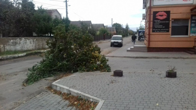 У сусідньому місті Нововолинську вітер також поламав дерева. Гілки лежать на проїжджій частині, створюючи небезпеку для руху автомобілів.