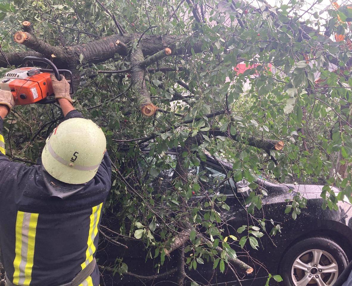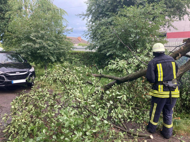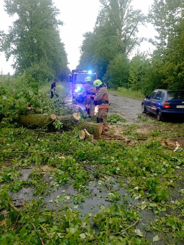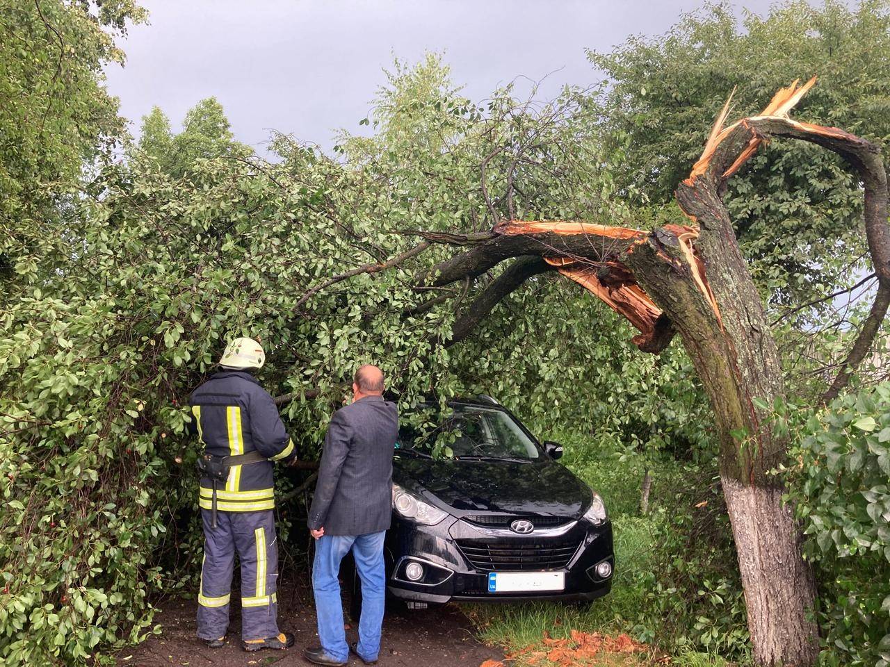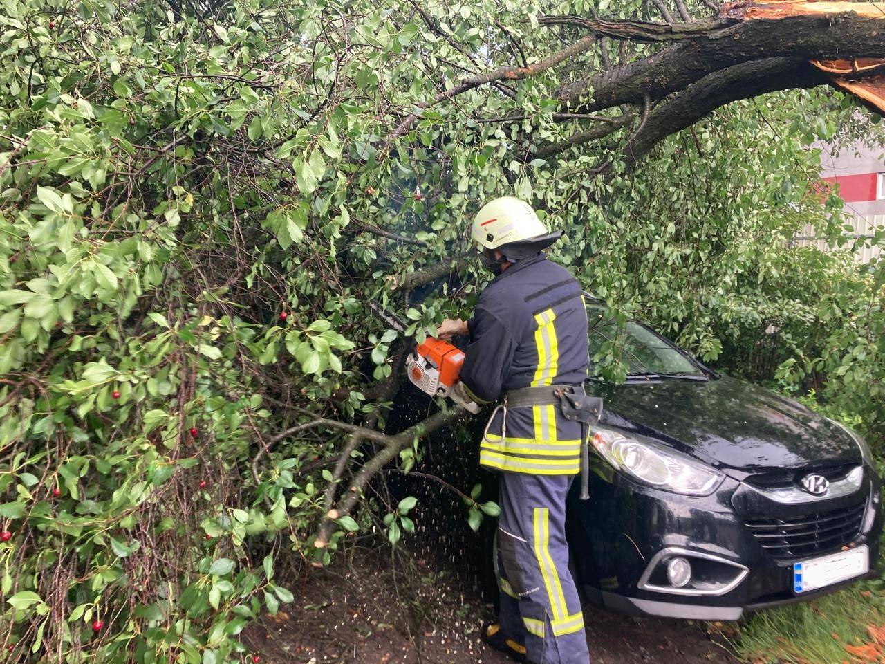 Сьогодні на Волині пройшов дощ із грозами та сильним вітром. Рятувальникам довелося вивільняти з-під зламаного дерева легковик та розчищати автодорогу.
