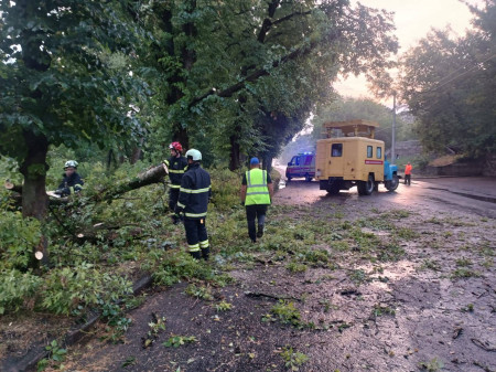 Також відбувалися аварійно-рятувальні роботи в Луцьку на вулиці Зоряній. Там на два легкові автомобілі упав ясен, рятувальники його розкряжували та вивільнили транспортні засоби.