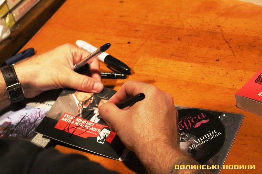 Під час концерту автор і виконавець дарував гостям заходу свої компакт-диски та свої романи. Очікував на відвідувачів і аукціон: Орест Лютий зі сцени розіграв свій плакат, а вторговані кошти пообіцяв спрямувати на створення нової книги.Після презентації й концерту всі охочі змогли отримати автограф Антіна Мухарського і сфотографуватися з артистом.Вікторія Семенюк, Олександр Гаврилюк