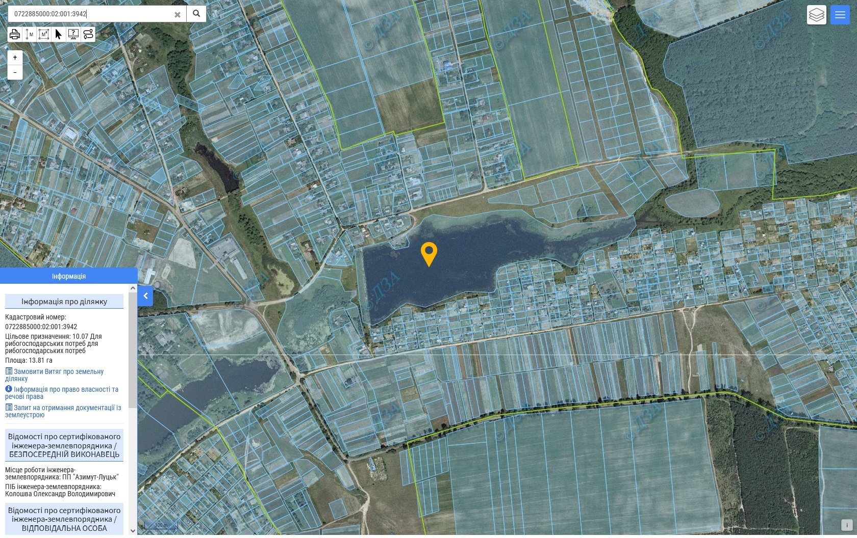 - право оренди (річна орендна плата) земельної ділянки водного фонду площею 3,2431 га в комплексі з розташованим на ній водним об’єктом площею 2,1500 га, кадастровий номер – 0722885000:02:001:0900, яка розташована в селі Гаразджа Луцького району Волинської області;