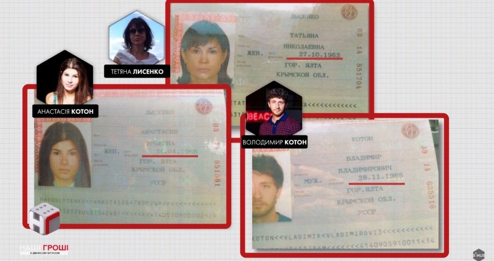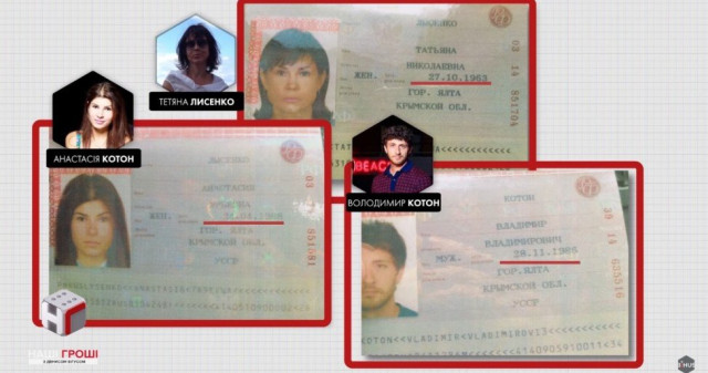 У серпні Інтернет-видання ОРД опубікувало копії російських паспортів – нібито виданих Тетяні Лисенко, Анастасії Котон і Володимиру Котону. Копії виглядали цілком реалістично. Формат бланку – відповідав формату російського паспорта. Фото на них – це й справді Тетяна Лисенко, її дочка та зять. Дати народження також співпадали.