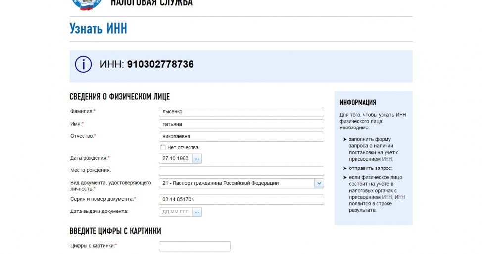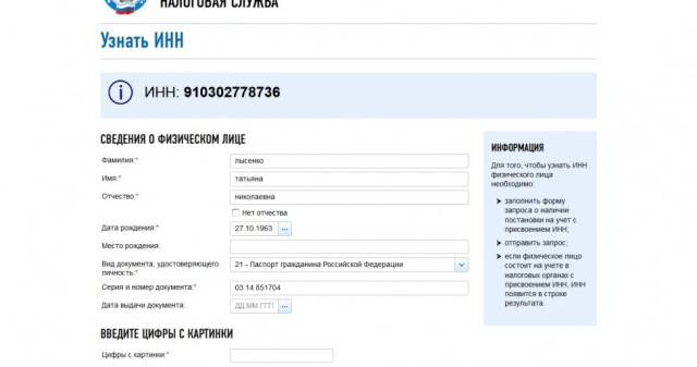 За даними Федеральної потаткової служби РФ, Тетяні Лисенко і її зятю – російський ІПН присвоєно. Це означає, що російські паспорти з такими персональними даними – існують. За номером оприлюдненого паспорта, нібито виданого дочці, ІПН не пробивається.