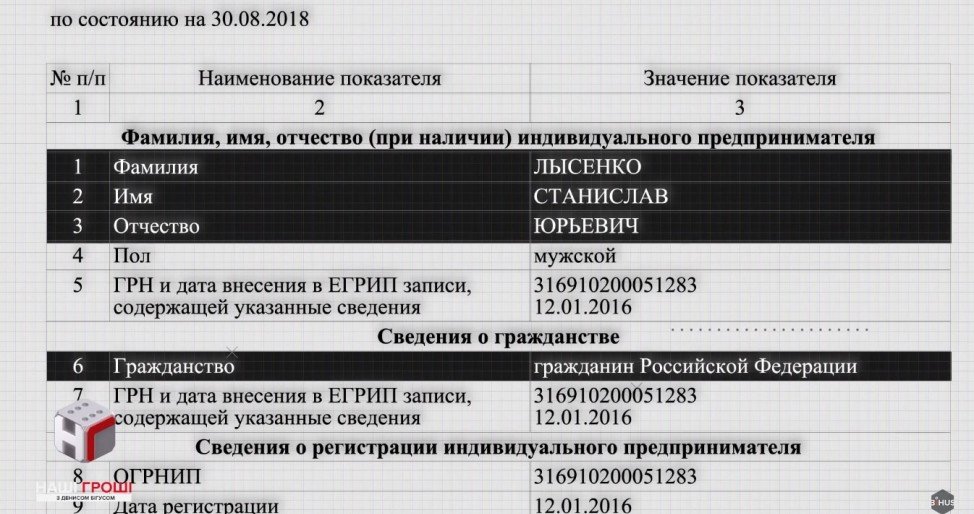 Окрім цього в Єдиному реєстрі юридичних осіб РФ знайшовся витяг на повного тезку Станіслава Лисенка з Ялти (старший син Лисенко), де він також зазначений громадянином Росії. Такі ж витяги ЕГРЮЛ видає – на дружину і тещу Станіслава, і на батьків Котона. Тобто загалом 8 родичів з підозрою на подвійне громадянство. Подвійне, в котрому друге – це громадянство країни, з якою Україна вже п’ятий рік воює.