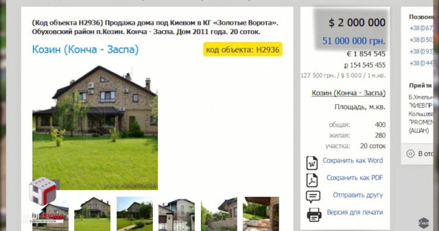 Підсумуємо. Три будинки в Козині – дуже грубо це близько 8 мільйонів доларів. Ленд Крузер на “непробивних” номерах і недешеві польоти на гелікоптері. А тепер найважливіше питання: звідки це все взялося? Чи є хоч якесь зрозуміле джерело таких статків, окрім “дахування” фармацевтичних компаній?