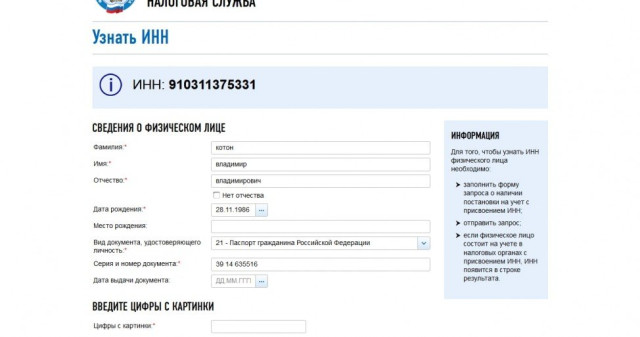Хоча МВС РФ відмовились підтвердити паспортні дані за нашим запитом, ми верифікували їх на сайті податкової служби Росії. Там за номером паспорта, ПІБ і датою народження можна дізнатися - чи існує валідний паспорт з такими даними, та чи надавався його власнику індивідуальний податковий номер.