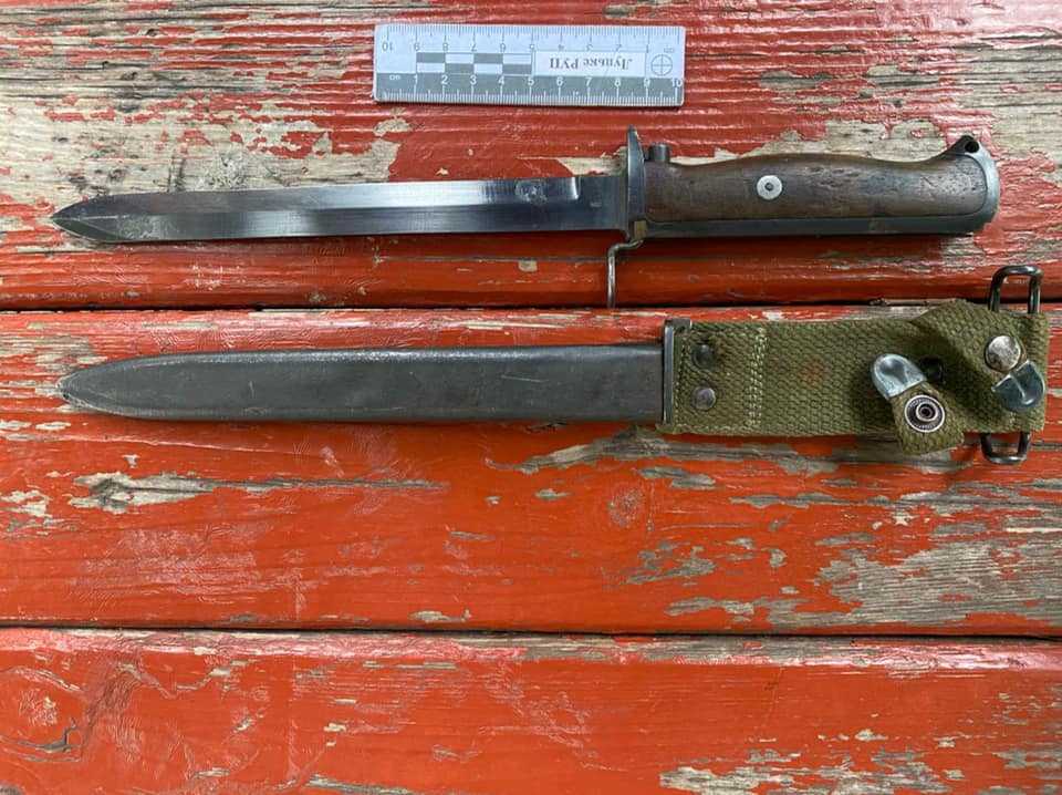 Під час поверхневої перевірки у нього виявили предмет ззовні схожий на штик-ніж. На місце події викликано слідчо-оперативну групу. Приїхавши за адресою, правоохоронці вилучили у правопорушника небезпечний предмет для проведення експертизи.
