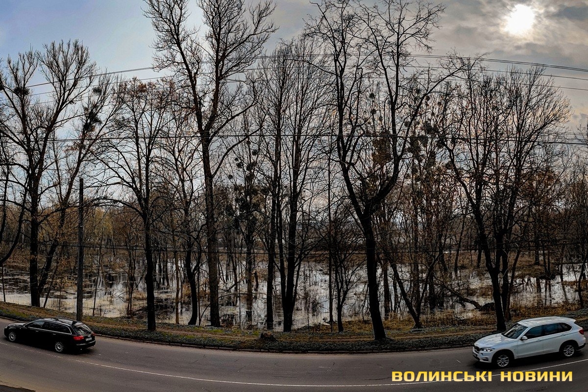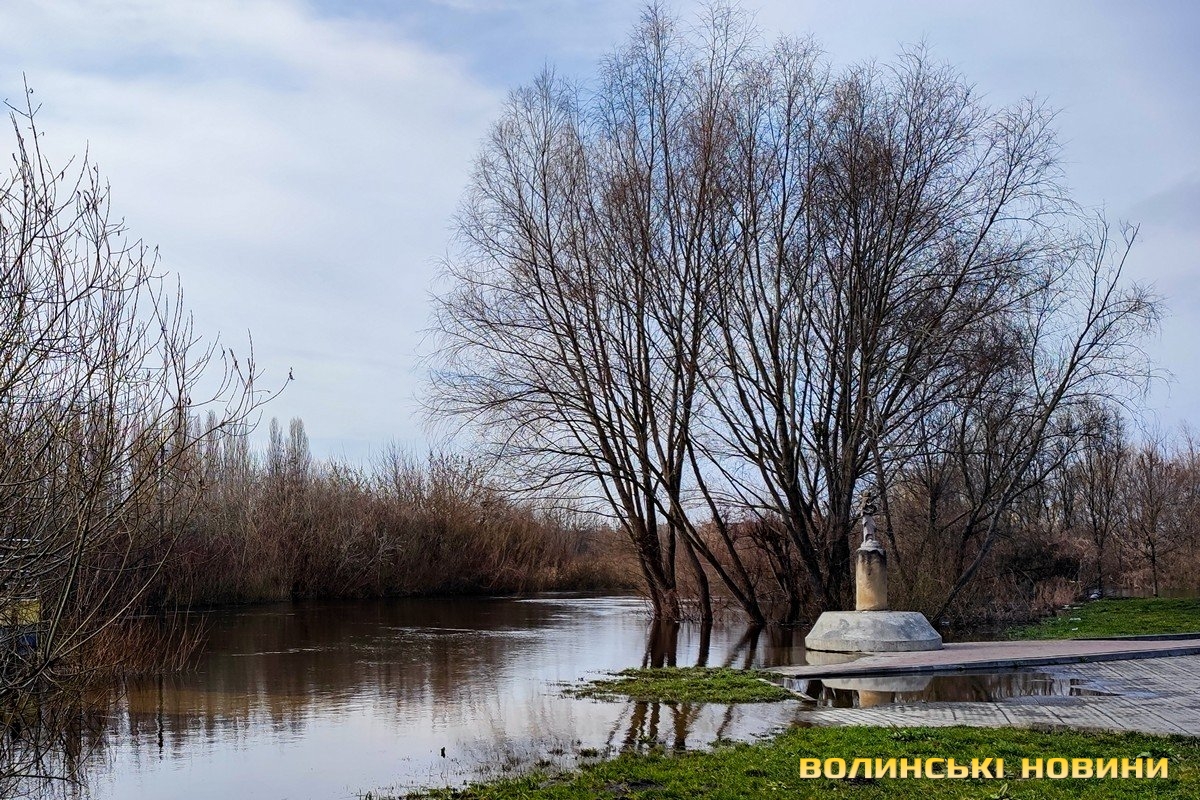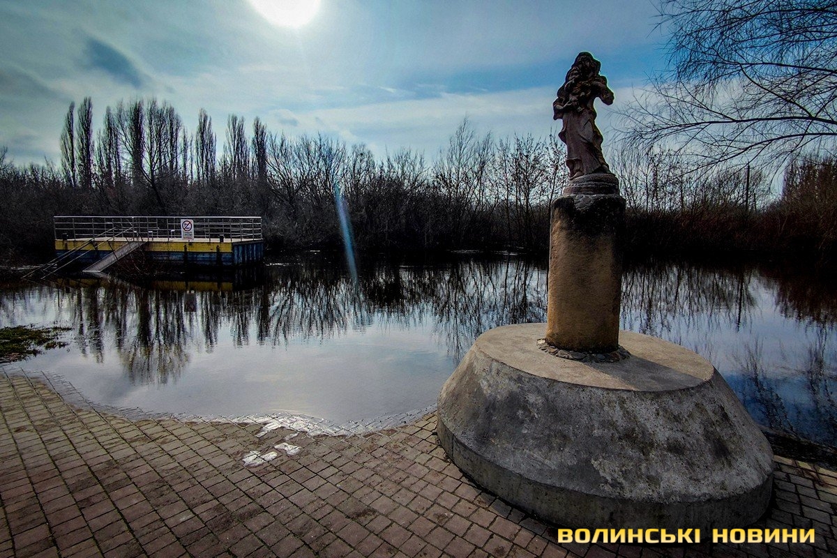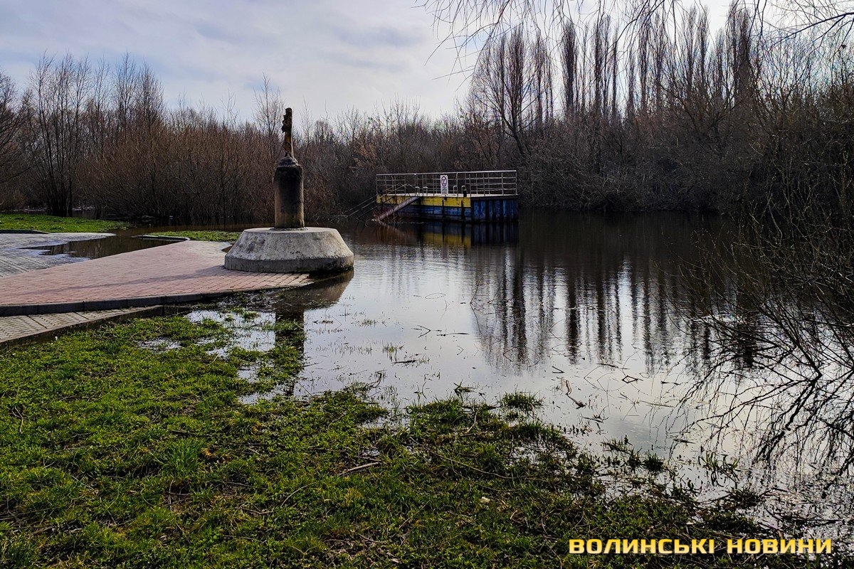 Особливо це помітно біля будинку скульптора Миколи Голованя. Тут Стир не лише розлився більше, ніж зазвичай, але й вийшов з берегів – вода підійшла аж до самого пам'ятного знака. Що вже казати про затоплені сусідські городи, що нижче вздовж берегової лінії.Читати ще: Луцька дамба: кликуни, бігова доріжка та платанова алея. Фото