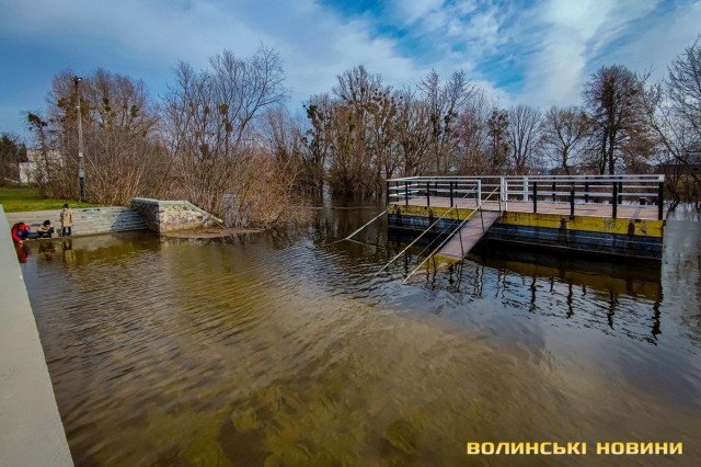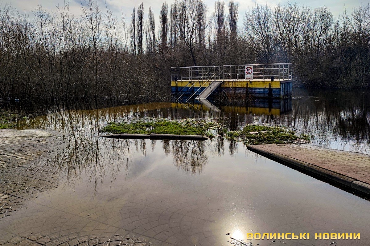 Силу весняного Стиру стає помітно, коли підійти ближче до річки, у районі міського пляжу. Сходи до води тут затоплені так, що видно лише верхні частини перил.Вода зробила лінію берега майже невпізнаваною. Затишні місця, що їх здавна облаштували місцеві рибалки, залиті. Подекуди річка розлилася аж до стежини понад Стиром, а частина дерев підтоплена.