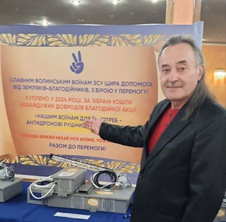 У 2023 році цей непосидючий пенсіонер (так його називають багато друзів і знайомих) організував серед членів своєї родини, друзів, товаришів та знайомих дві благодійні акції із збору коштів для допомоги волинським воїнам 14-ї та 100-ї бригад. Під час проведених цих двох благодійних акцій на потреби волинських військових було зібрано 517 612 грн.