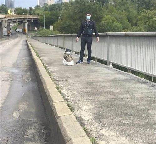 Зі слів очевидців, зараз на мості Метро стоїть чоловік з пакетом, від якого виходить провід до пульта в його руці. Поліція міст перекрила.
