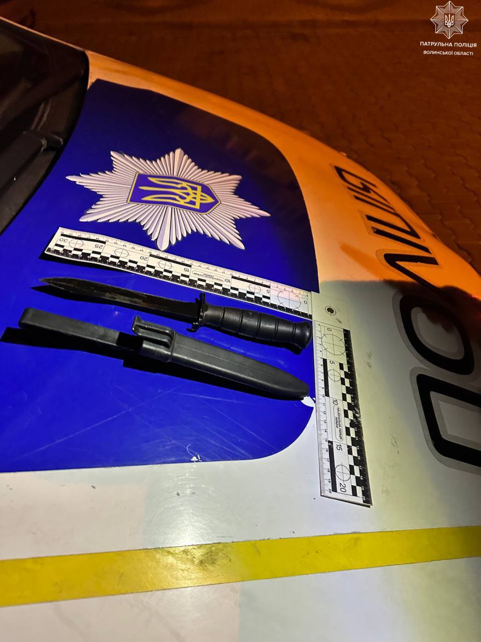 Патрульні поліцейські швидко прибули на місце події й знайшли чоловіка, на якого вказала жінка. Під час спілкування з ним, інспектори у 28-річного порушника виявили ніж з ознаками холодної зброї.