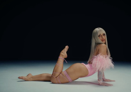 На Леди Гагу смахивает в розовом купальнике, прическа как у неё в клипе Покер Фейс