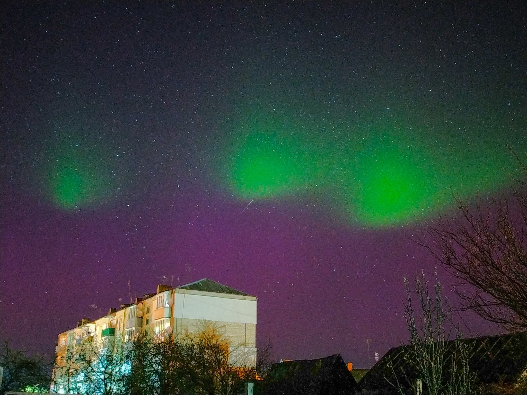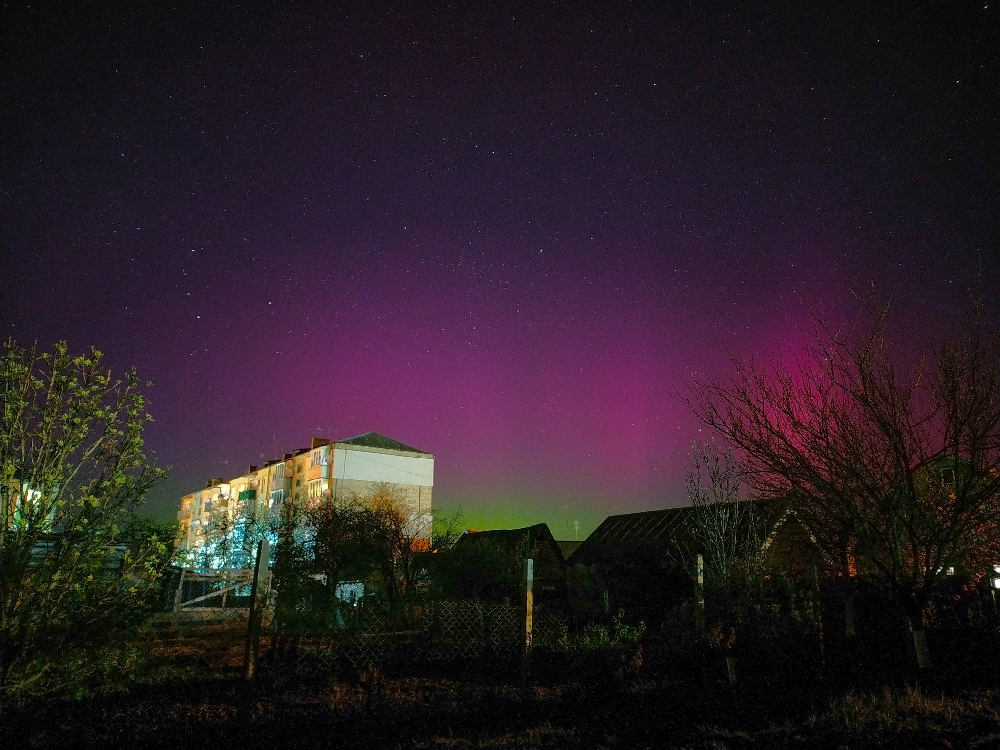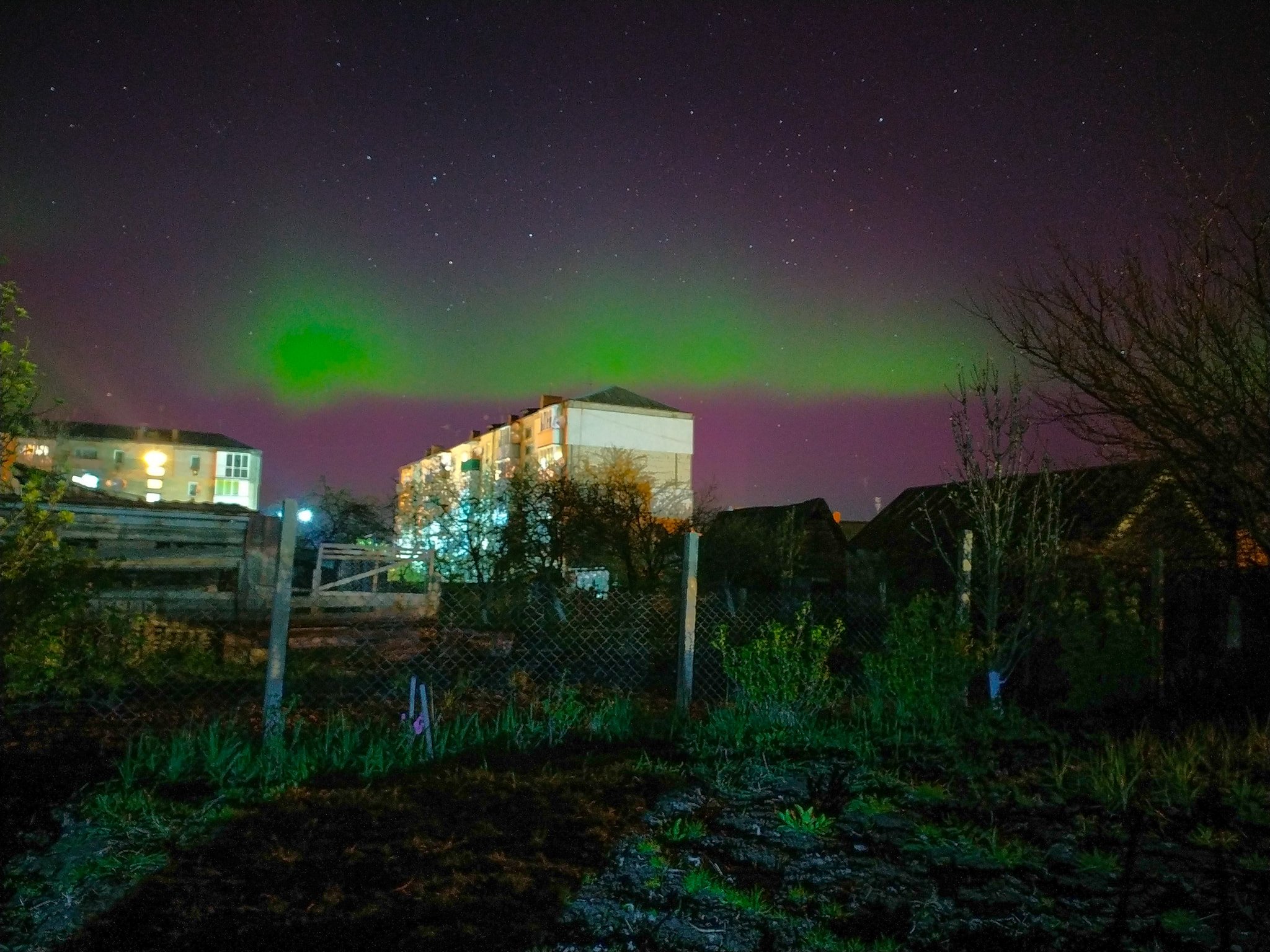 Вкрай рідкісне для України північне сяйво увечері в неділю, 23 квітня, спостерігали у низці північних областей України.