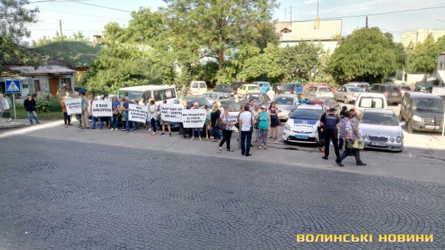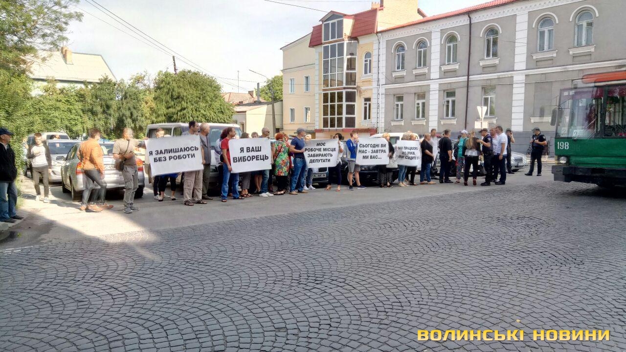Із протестом під Луцькою міською радою зібралися підприємці ринка на вулиці Глушець, 1. Вони проти того, що на сесію винесено проект рішення, аби обмежити до кінця цього року дозвіл на статус ринку, який перебуває в оренді підприємця Пахолка.