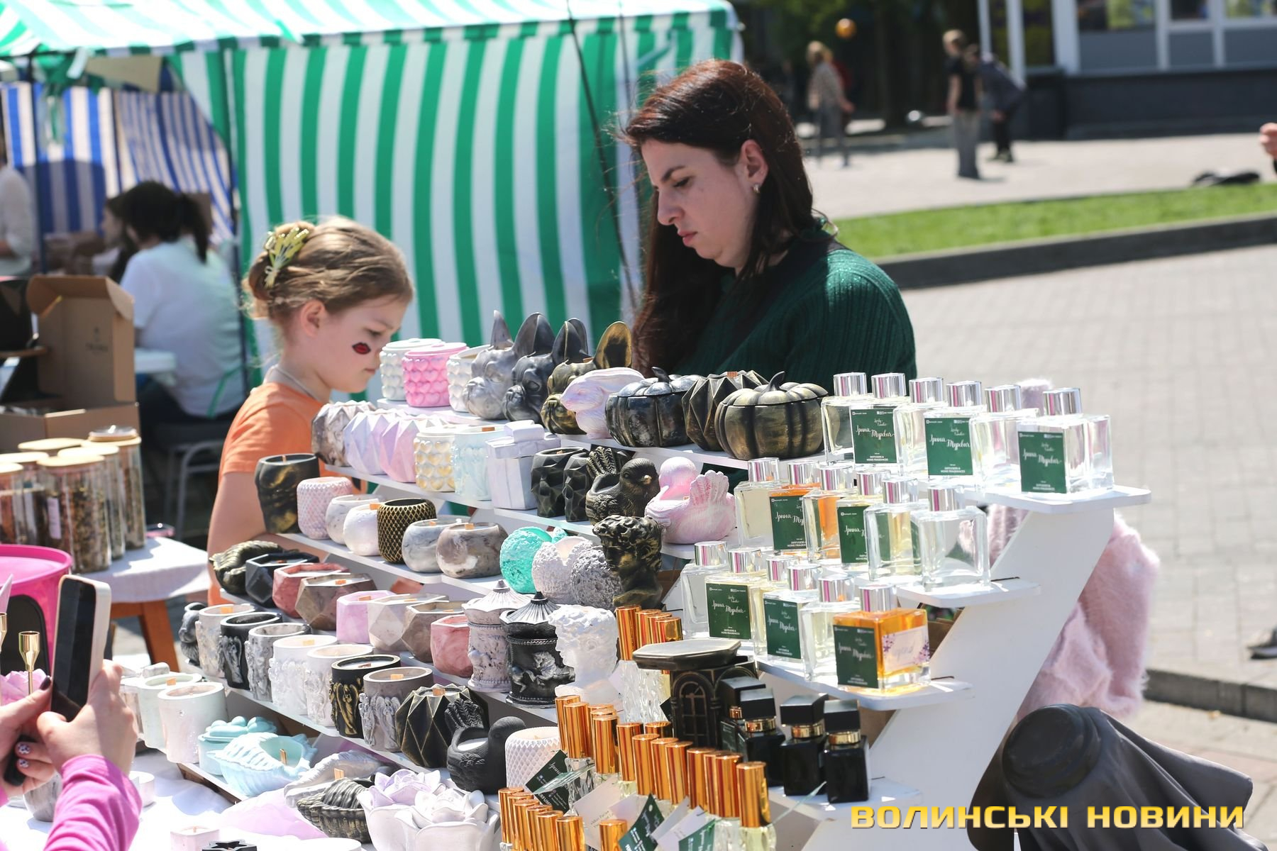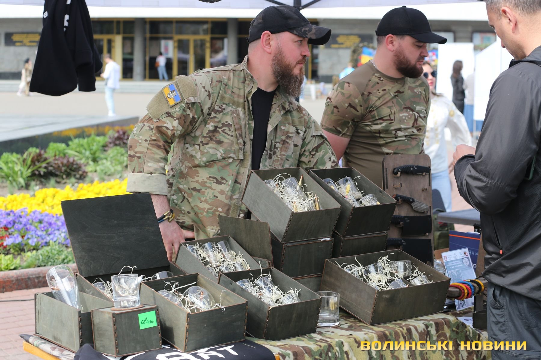 «Сьогодні до нас завітали представники Львова, Хмельницького, Чернігова, Києва, Ірпеня. Звісно, чимало людей із Луцька і Волинської області. Такими ярмарками ми не лише популяризуємо наше місто, а й ветеранську політику, що тут провадять. Це показник того, що вона дієва і стабільно працює», – акцентував Олег Кобилинський.Засновник благодійної майстерні Bat.art Андрій Несмачний уперше відвідав Луцьк. Показував кілька напрямів роботи: вироби зі скла, браслети, ножі, вироби зі шкіри. Чоловік служить у війську загалом понад сім років, захищаючи Україну від російської навали.
