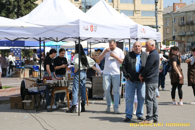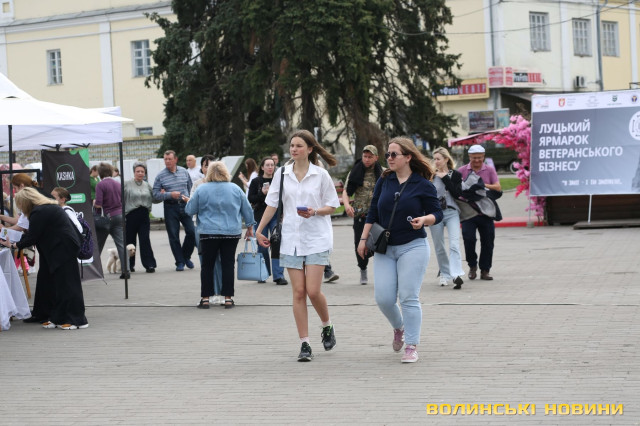 Четвертий ярмарок ветеранського бізнесу на Театральному майдані в Луцьку зібрав до 40 учасників. Гасло незмінне: «Я зміг – і ти зможеш!» Історіями успіху ділилися ветерани і ветеранки, члени родин чинних військових, родини загиблих (померлих) захисників.
